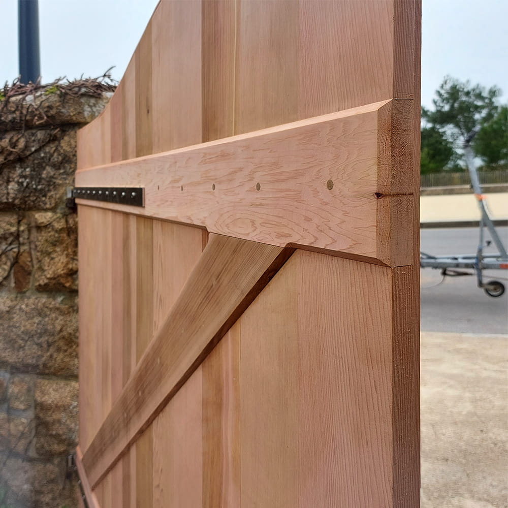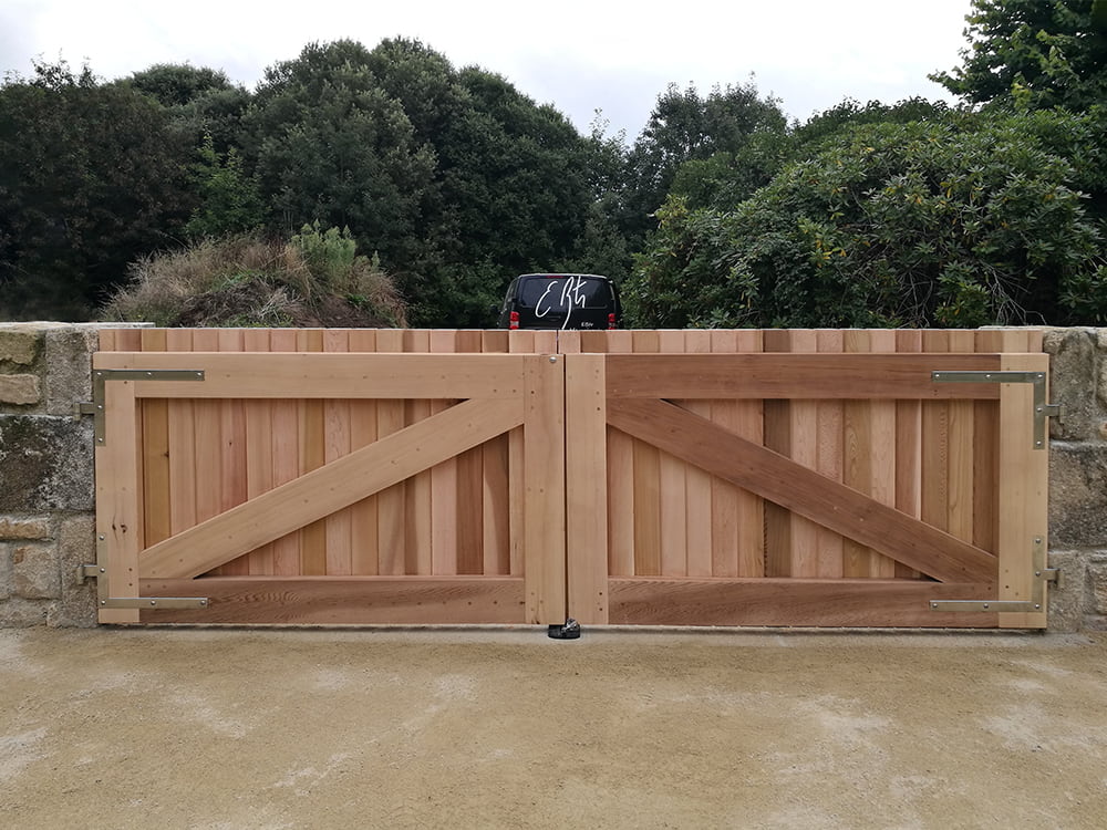 Portail en bois conçu et fabriqué par EBtr Menuiseries
