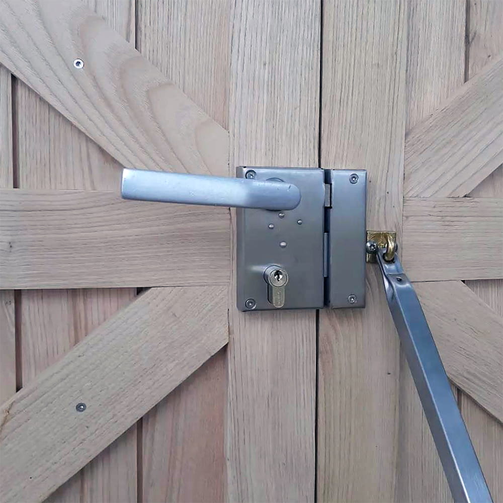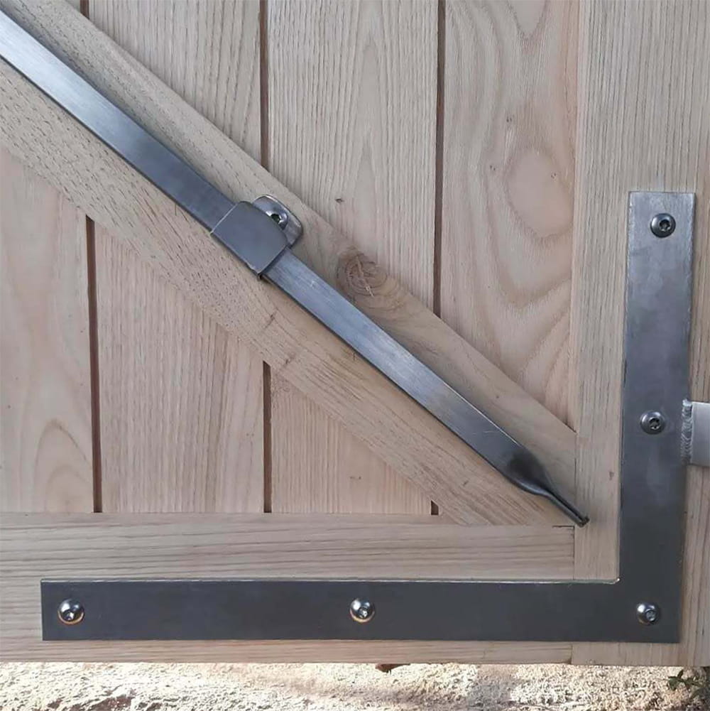 Montage traditionnel et système de fermeture encastré. Le loquet est en bois encastré.