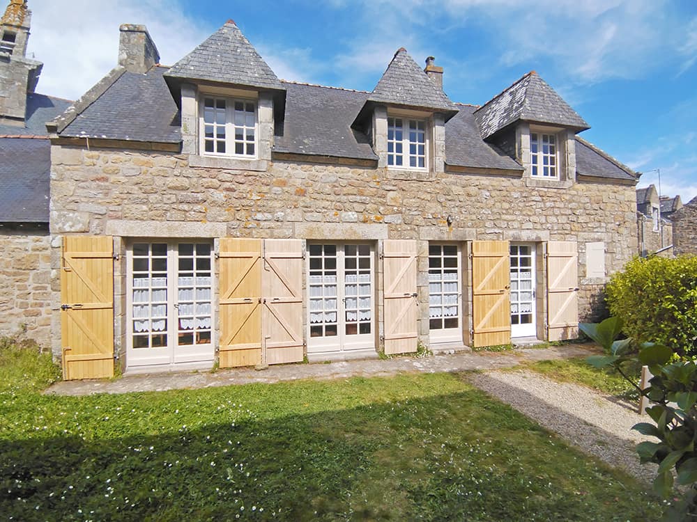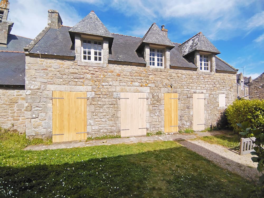 À Carnac, des volets en châtaignier viennent habiller les baies vitrées de cette ancienne demeure en pierre.
