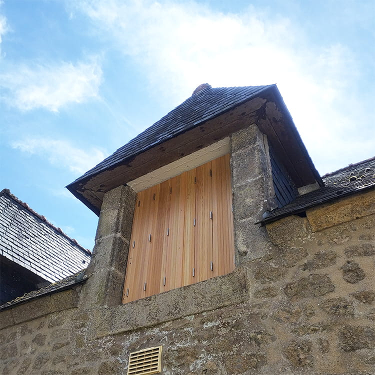 Les volets accordéon ont été également remplacés, réalisés en châtaigner, pour compléter la façade.